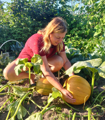 Liefst ook nog op blote voeten. Soms ga ik gewoon languit liggen op de aarde. Op mijn buik, als dat nodig voelt, of op mijn rug. Het is onmogelijk voor mij om ‘schoon’ van de moestuin vandaan te komen. Ik zie er altijd uit als een varkentje dat in de modder heeft liggen rollen. En ik vind het heerlijk! Ik kom altijd tot rust op de tuin. Even weer gronden, terug bij mezelf. En wat een rijkdom! De bloemen, de planten, de vruchten, de groentjes, de rust…