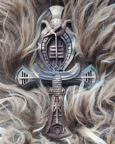 Deze prachtige Ankh is bruin, groen en goud. Deze kleuren staan symbool voor de oerbossen. Een heel oude, aardse energie.