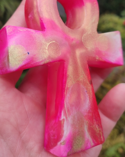 Deze prachtige Ankh is roze met goud. Ze IS liefde.