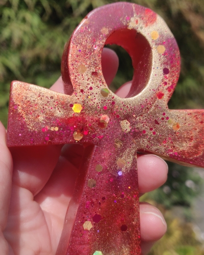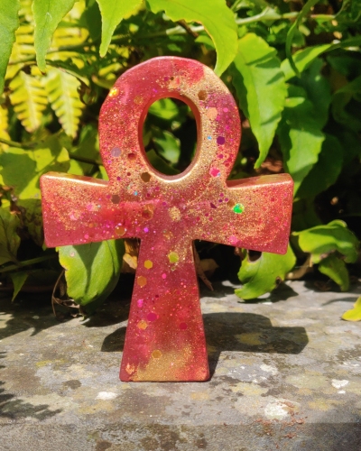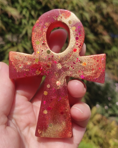 Deze prachtige Ankh is rood met goud. Intens en geaard.