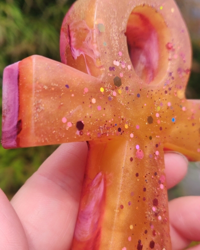 Deze prachtige Ankh is oranje-geel met een beetje rood en goud. Zacht en liefdevol.