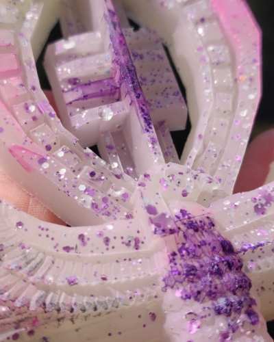 Materiaal | Een combinatie van giethars, kleurpigment en glitters |