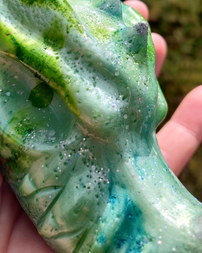 Materiaal | Een combinatie van giethars, kleurpigment en glitters |