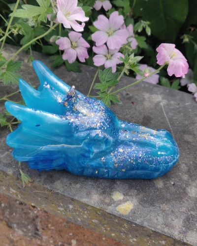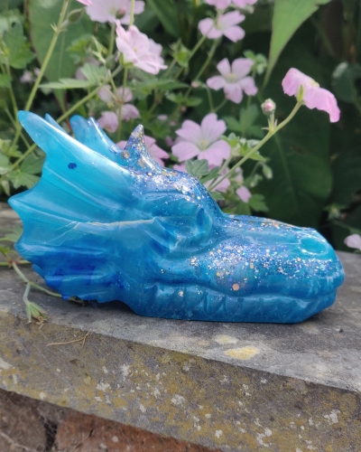 Deze prachtige draak is verschillende tinten blauw. Symbool voor het water op en in Moeder Aarde en het water in jezelf.