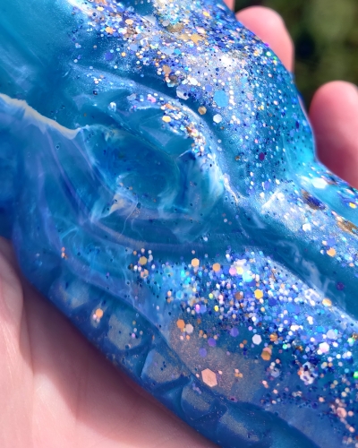 Materiaal | Een combinatie van giethars, kleurpigment en glitters |