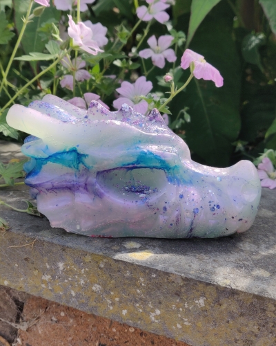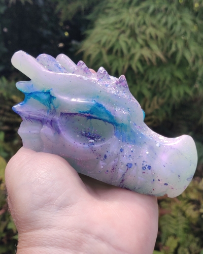 Deze prachtige draak is verschillende tinten heel lichtblauw, ijsblauw. Symbool voor het ijswater en sneeuw op en in Moeder Aarde.