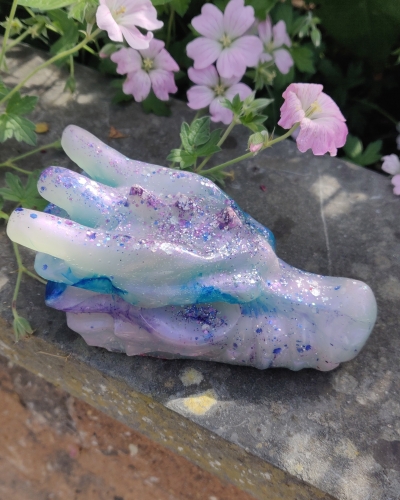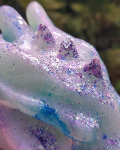 Materiaal | Een combinatie van giethars, kleurpigment en glitters |