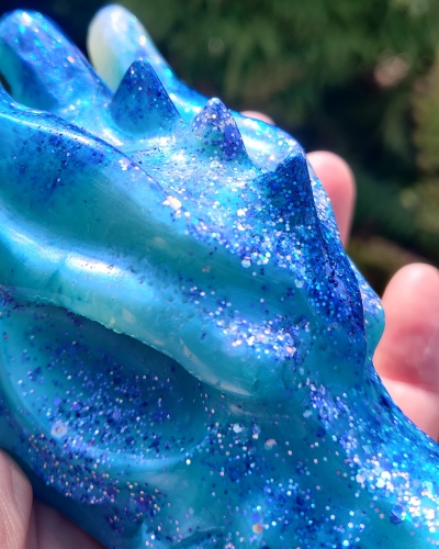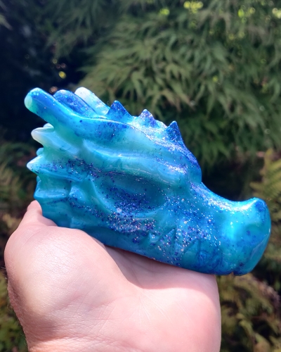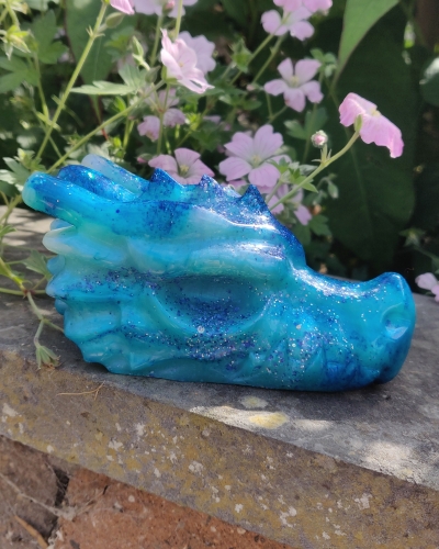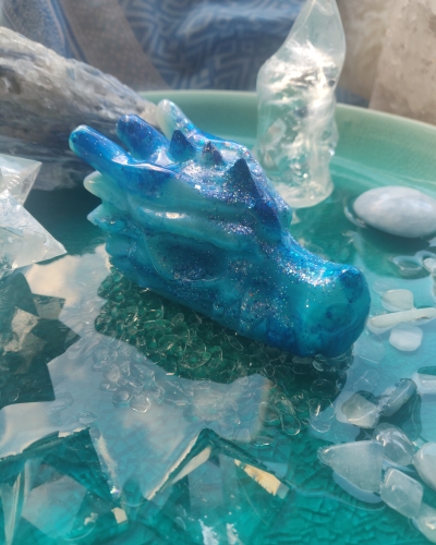 Deze prachtige draak is verschillende tinten blauw. Symbool voor het water op en in Moeder Aarde en het water in jezelf.