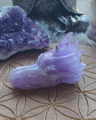 Deze prachtige draak is verschillende tinten zacht paars, met een beetje wit. Symbool voor de connectie met spirit.