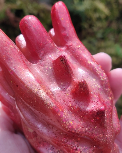 Materiaal | Een combinatie van giethars, kleurpigment en glitters |
