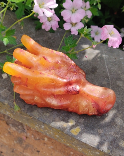 Materiaal | Een combinatie van giethars, kleurpigment en glitters |