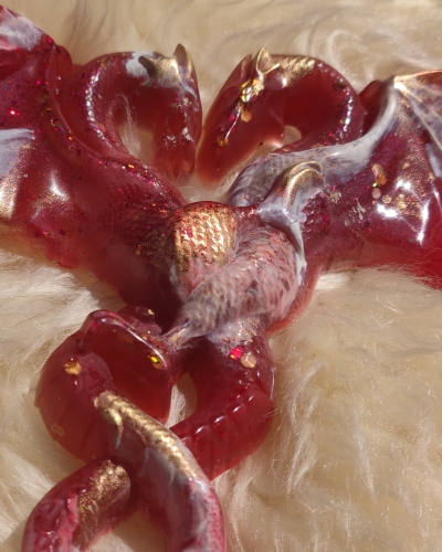 Materiaal | Een combinatie van giethars, kleurpigment en glitters |