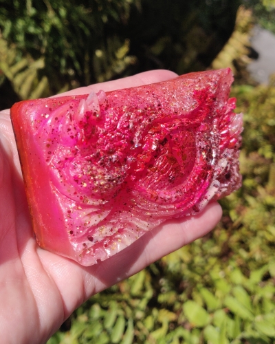 Materiaal | Een combinatie van giethars, kleurpigment en glitters |