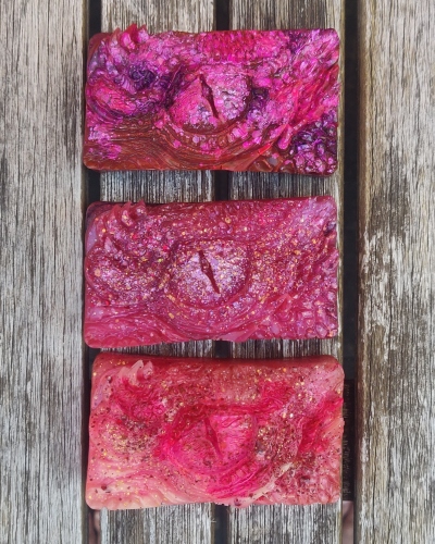 Materiaal | Een combinatie van giethars, kleurpigment en glitters |