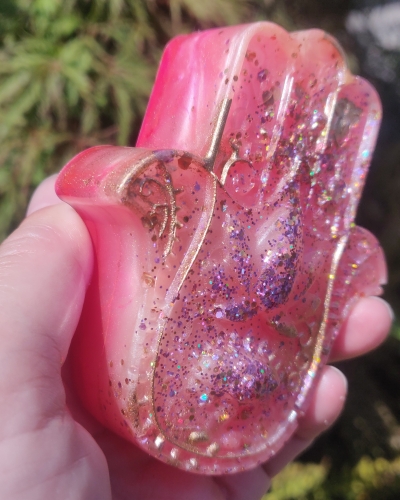 Materiaal | Een combinatie van giethars, kleurpigment en glitters |