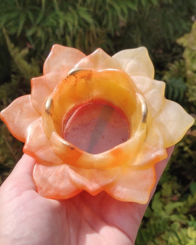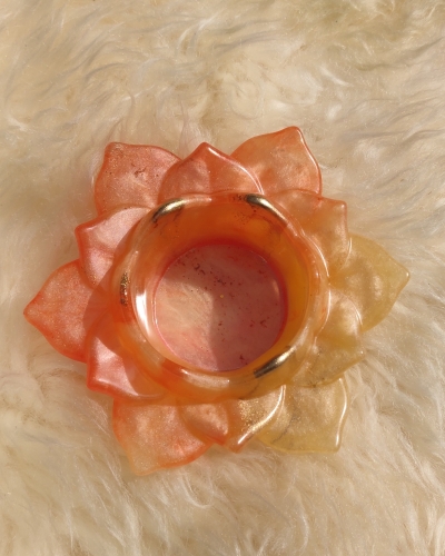 Amber heeft de vorm van een prachtige gele lotusbloem en staat symbool voor het ontvouwen van jouw ‘blaadjes’. Het herrijzen uit de ‘modder’, zoals de lotusbloem doet. Groeien en bloeien. Het licht vinden in jezelf en een licht zijn voor anderen.