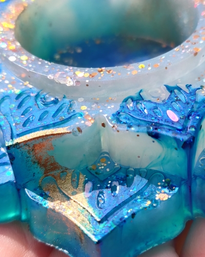 Materiaal | Een combinatie van giethars, kleurpigment en glitters |