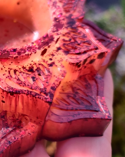 Materiaal | Een combinatie van giethars, kleurpigment en glitters |