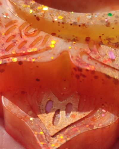 Materiaal | Een combinatie van giethars, kleurpigment en glitters |