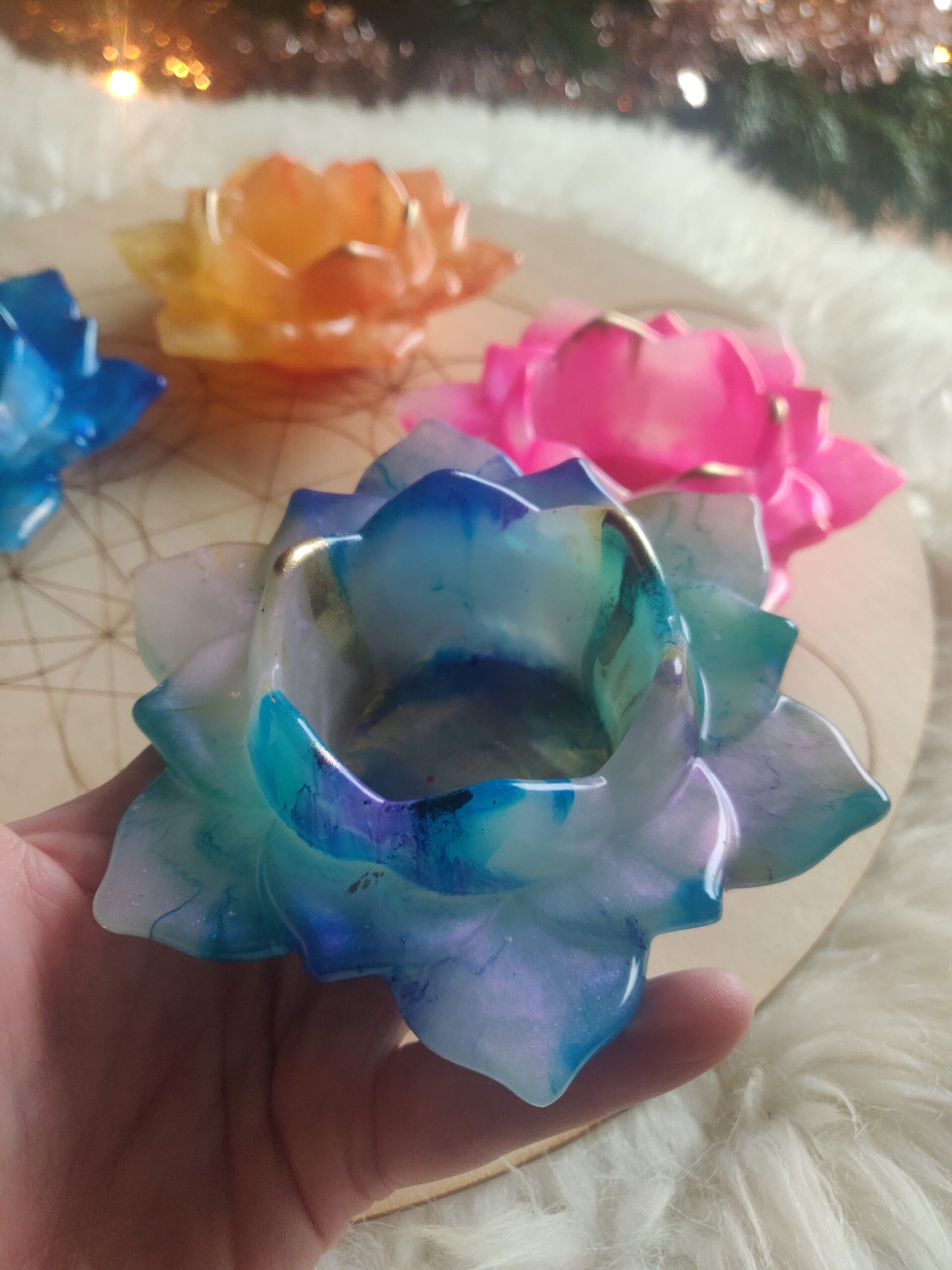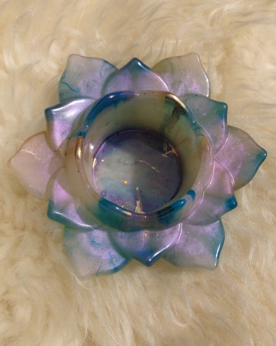 Dit prachtige lichtje is parelmoer met blauw en paars, als een prachtige parelmoeren lotusbloem.