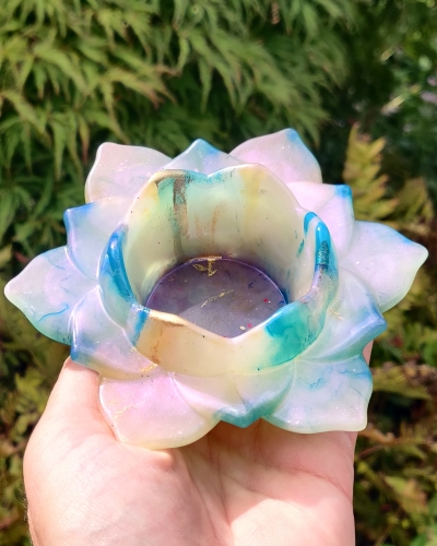 Lavender heeft de vorm van een prachtige parelmoer met blauw en paarse lotusbloem en staat symbool voor het ontvouwen van jouw ‘blaadjes’. Het herrijzen uit de ‘modder’, zoals de lotusbloem doet. Groeien en bloeien. Het licht vinden in jezelf en een licht zijn voor anderen.