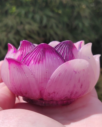 Dit prachtige lichtje is paars, als een prachtige paarse lotusbloem.