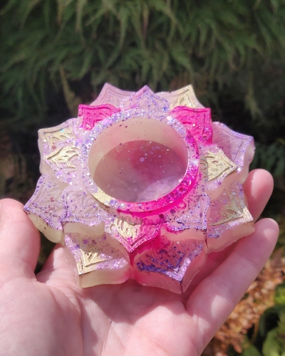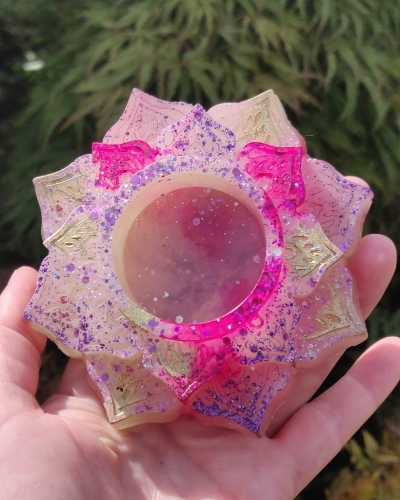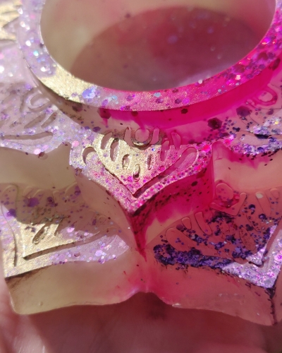 Materiaal | Een combinatie van giethars, kleurpigment en glitters |