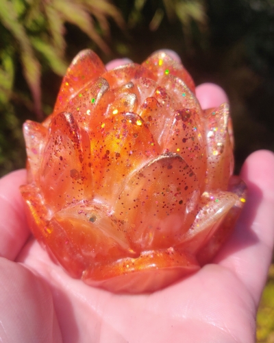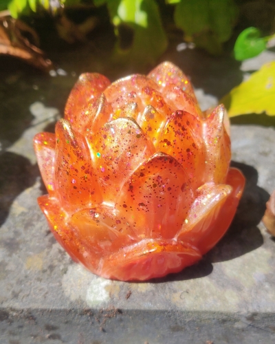 Deze prachtige lotus is oranje met goud. De kleur van je sacrale chakra.