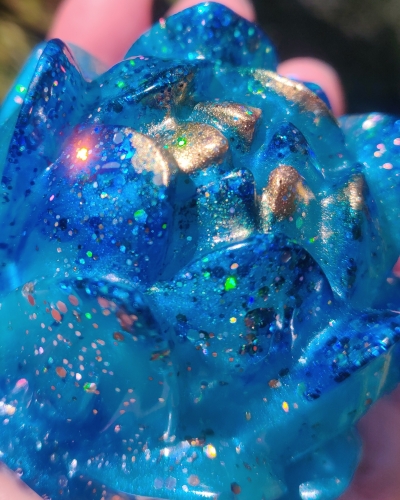 Materiaal | Een combinatie van giethars, kleurpigment en glitters |