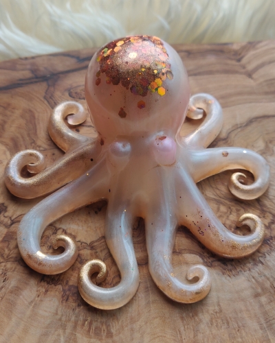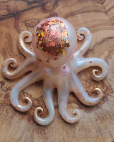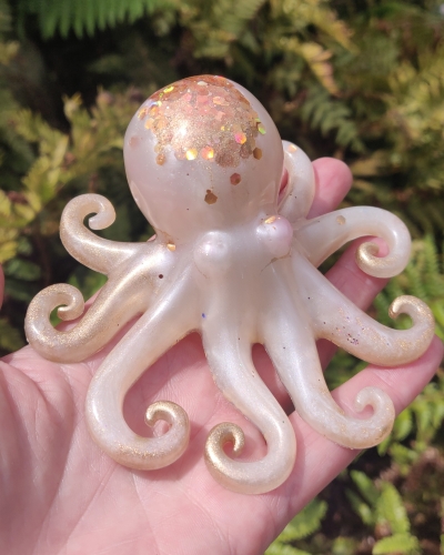 Dit prachtige octopusje is wit met goud, puur sterrenlicht.
