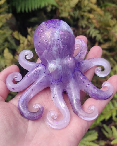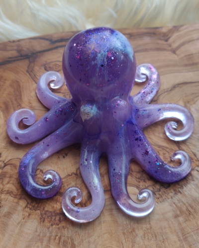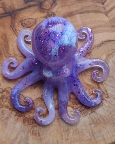 Dit prachtige octopusje is allerlei tinten paars met wit. Ze is rustig en intuïtief.