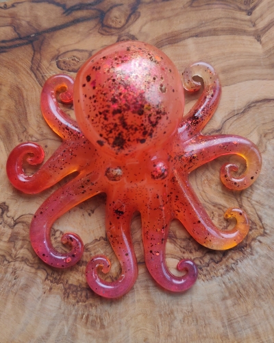Dit prachtige octopusje is oranje met een beetje goud en supercreatief.