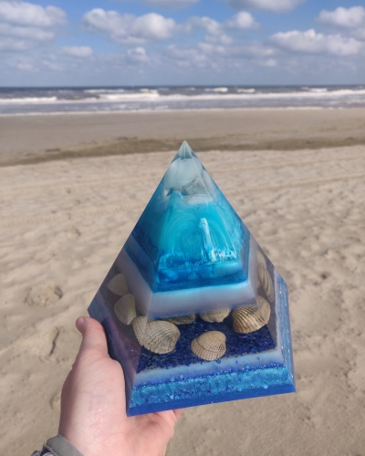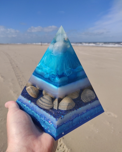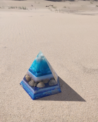 Er zijn ontzettend veel manieren waarop je deze piramide kunt gebruiken. Je kunt haar eigenlijk overal neerzetten waar het maar goed voelt. Omdat je haar energie bij een bepaalde plek vindt passen, omdat je haar energie in de ruimte wil brengen of gewoon ergens omdat ze daar zo mooi staat! Ze kan een prachtige aanvulling zijn op je altaar en je kan haar meenemen in een ritueel of ceremonie. En dit geval kan het een prachtige herinnering zijn aan een mooie tijd op Texel of een ander vergelijkbare plek!