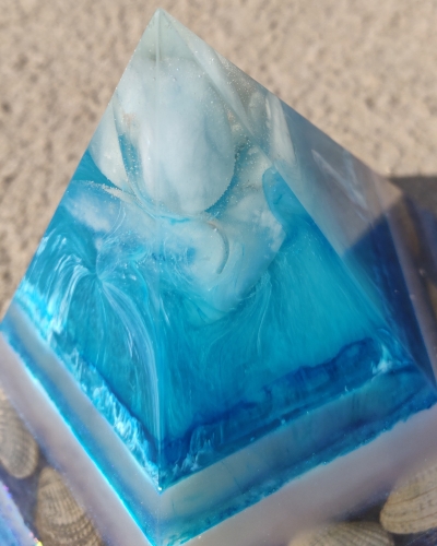 Deze piramide bevat prachtige ‘sparkly’ en ‘flowy’ blauw tinten. Zo kalmeert en verkoelt ze en laat ze je meebewegen in een rustige zachte flow.