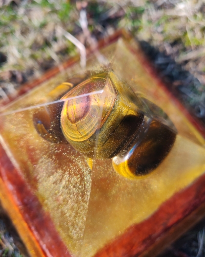 De Tijgeroog in de piramide werkt beschermend en aardend en trekt geluk, voorspoed en succes aan.