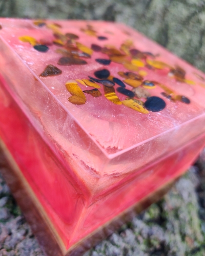 Je wordt toch gewoon ontzettend blij van deze prachtige kubus?! Summer vibes ten top, heerlijk stevig gegrond door haar effect op je wortel chakra, een vlammetje door je innerlijke zon die aangewakkerd wordt en dat allemaal in volle overgave en zelfvertrouwen. En je bent waarschijnlijk de enige op de hele wereld met een Watermeloen kubus met tijgeroog zaden!