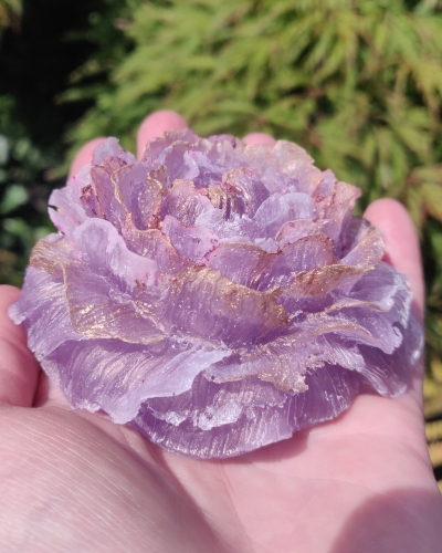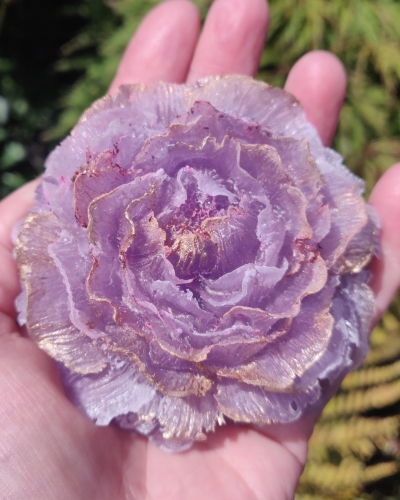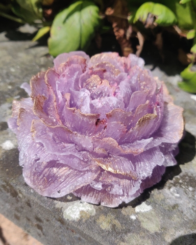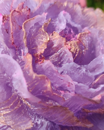 Deze prachtige roos is lichtpaars met goud. De kleuren staan symbool je intuïtie, ruimte en bevrijding.