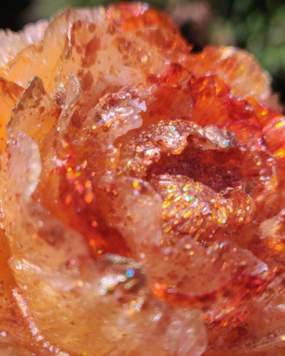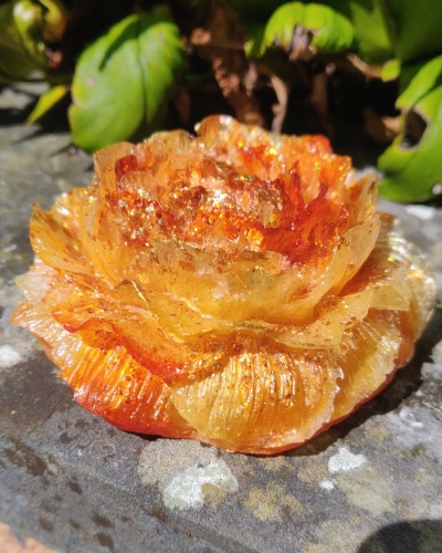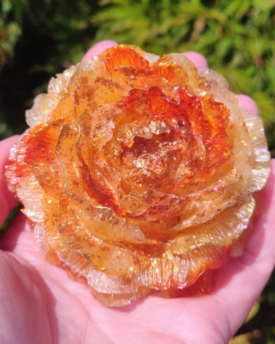 Deze prachtige roos is geel, oranje met goud. De kleuren staan symbool voor jouw innerlijke vuur.