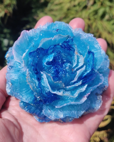 Deze prachtige roos is blauw, de kleur van rust en kalmte, van water en flow.