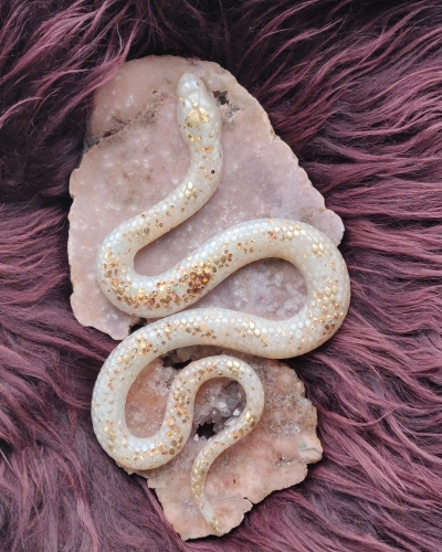 Deze prachtige slang is wit met goud. De witte kleur staat symbool voor het kruin chakra.